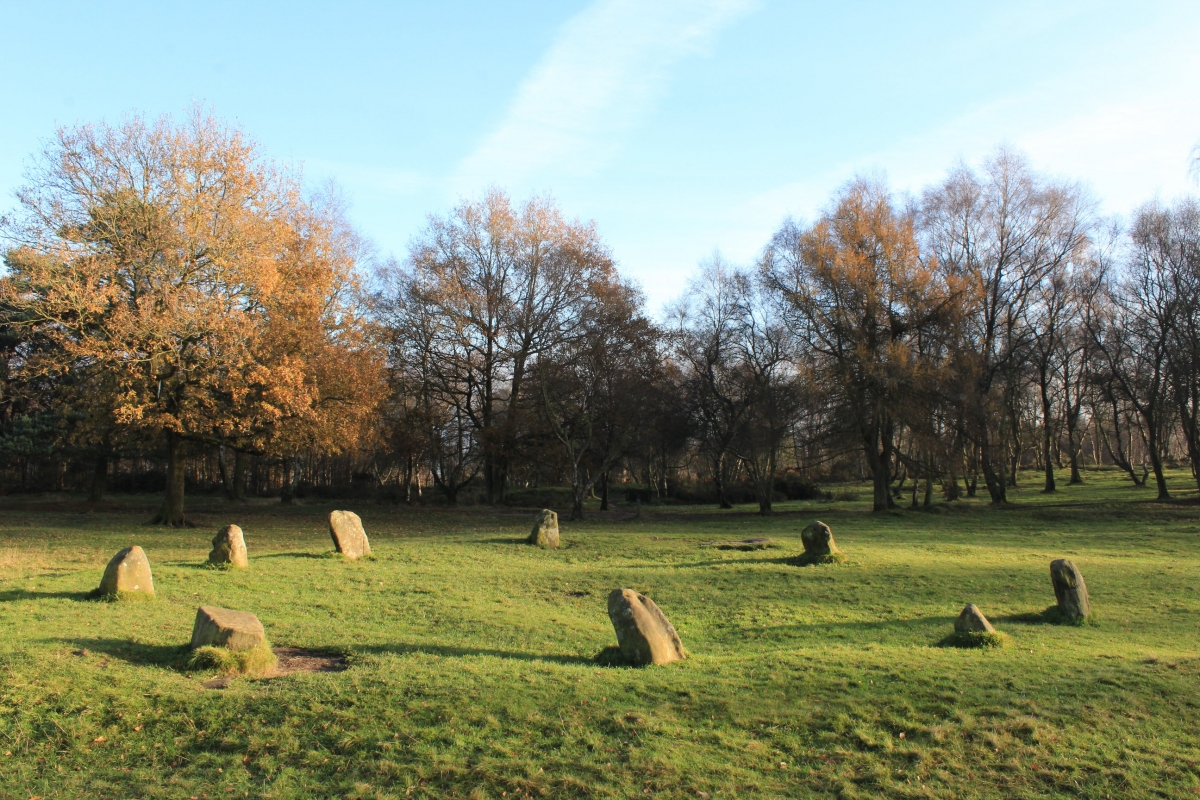 The Nine Ladies Circle is on Stanton Moor in the Peak District, a rather wild national park in northern England. Legend has it that nine feisty ladies were turned to stone for dancing to the music of a fiddler on the Christian Sabbath. The fiddler is the King Stone – a standing stone about 40 metres from the main circle. However, the embanked stone circle which is about 10 metres wide, has been found to date back to the Bronze Age and is at least 4000 years old. Nine Ladies is part of a large complex of prehistoric circles and standing stones on Stanton Moor used to mark earth energy points and track the cycles of the sun and moon.
