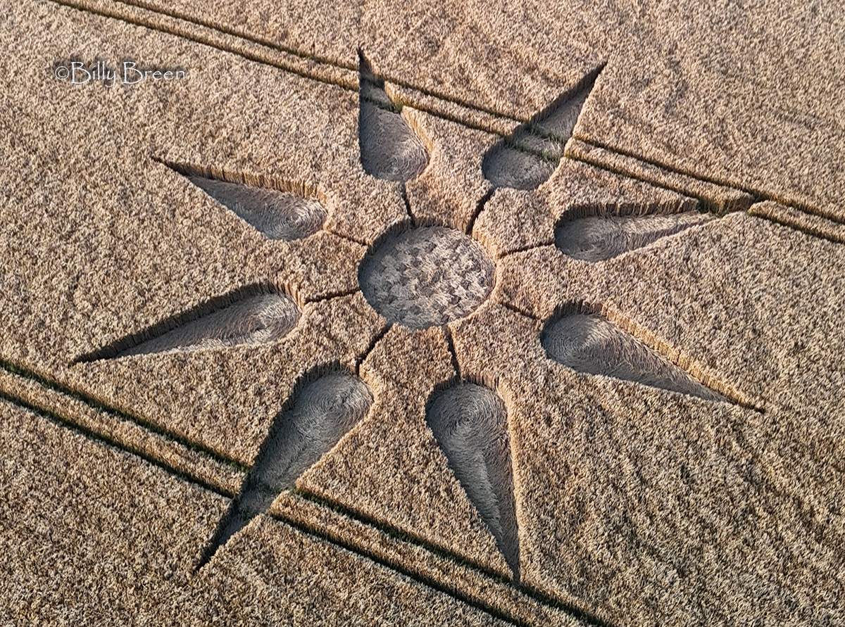 Credit to talented photographers Billy Breen and Dan Vidler for these beautiful crisp images of a crop circle that appeared in a barley field at Bondip Hill in Somerset, England in June 2025.
